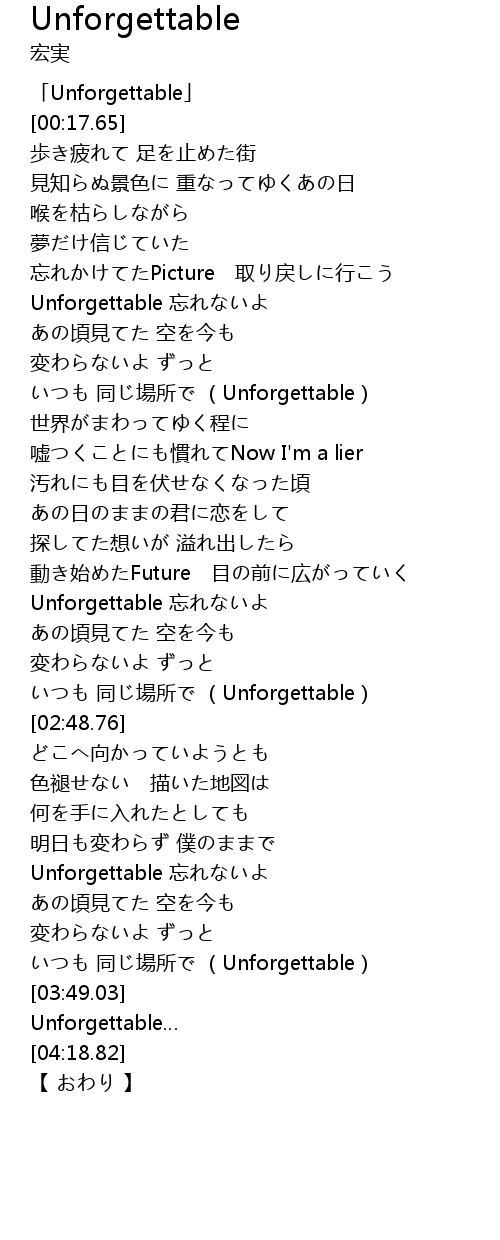 | [00:01.65] | 「Unforgettable」 |