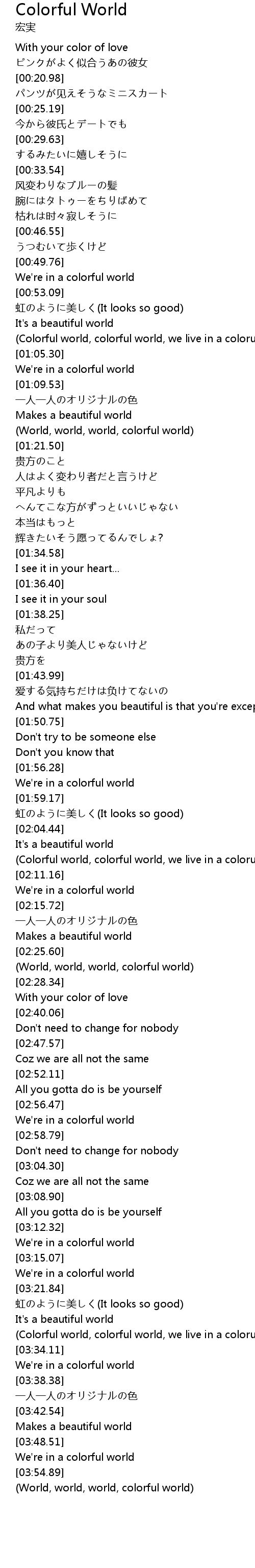 | [02:08.72] | (Colorful world, colorful world, we live in a coloruful world) |