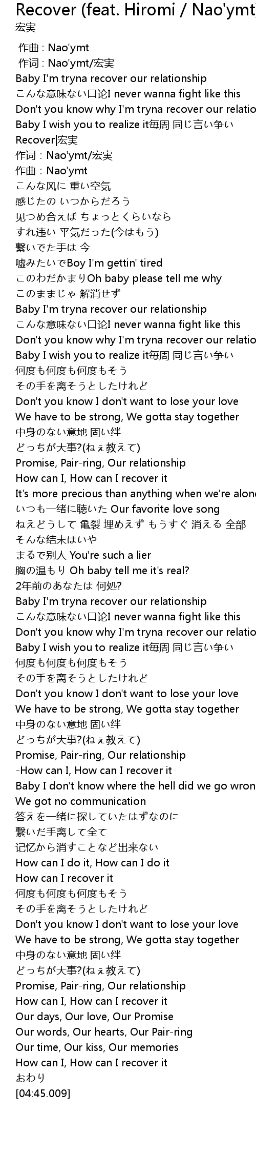 | [02:35.458] | Don't you know why I'm tryna recover our relationship |