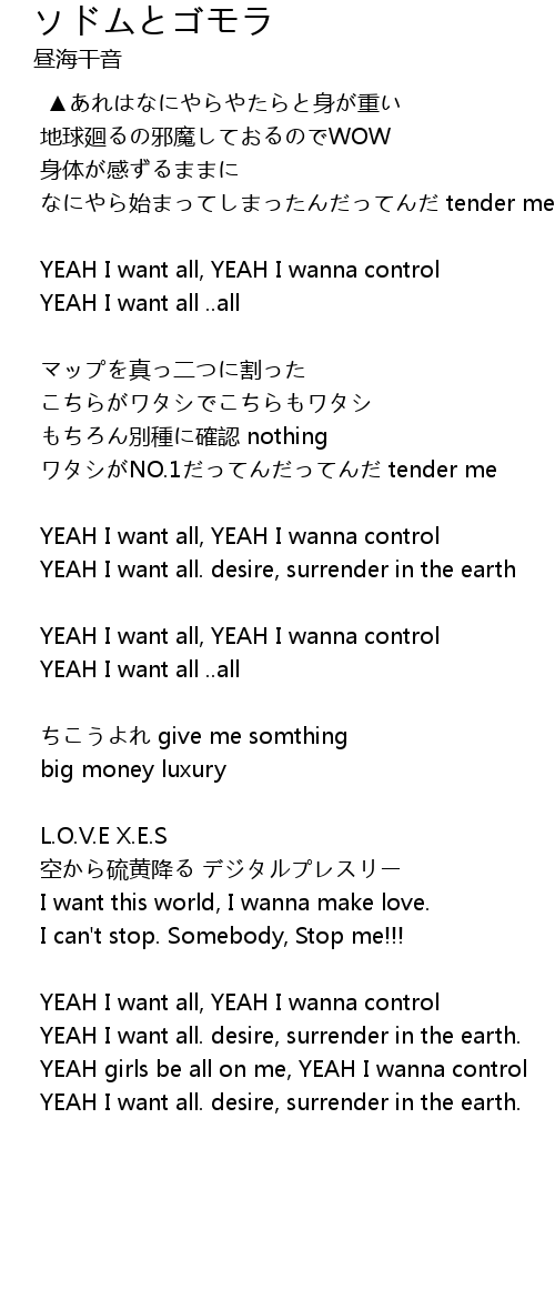 | YEAH I want all, YEAH I wanna control | |