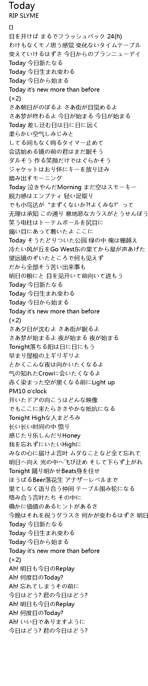 | Today そうたどりついた公园 绿の中 俺は栅越え | |