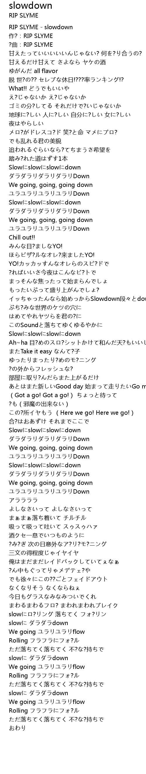 | [00:00.00] | RIP SLYME - slowdown |