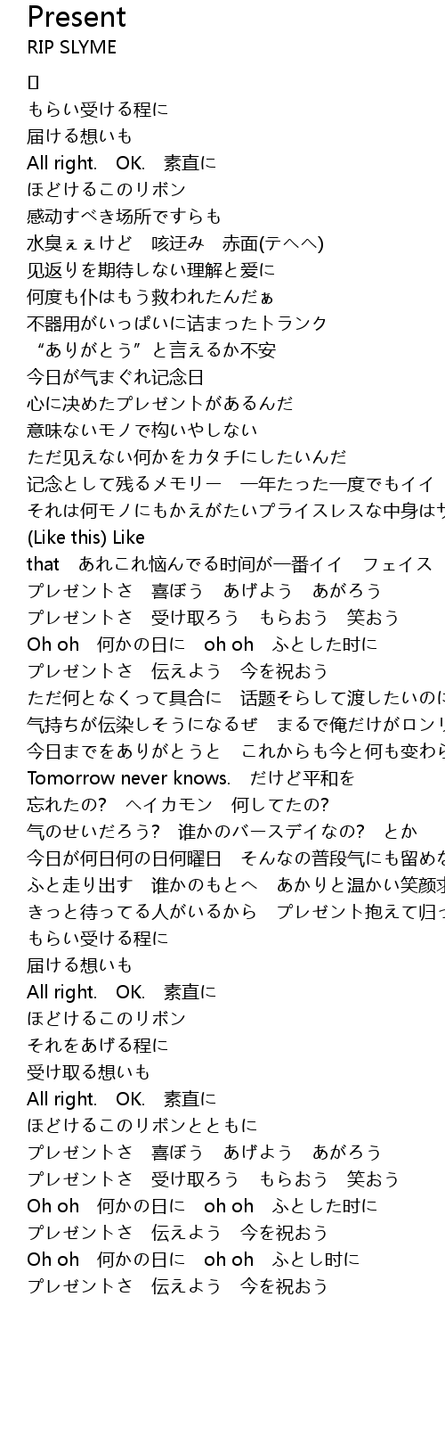 | プレゼントさ 伝えよう 今を祝おう | |