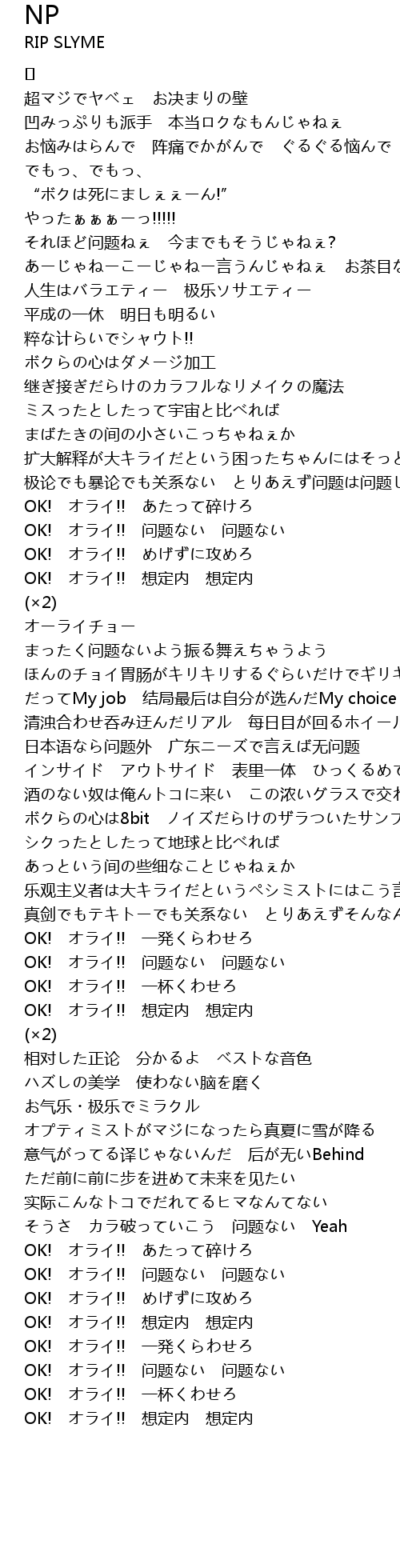 | そうさ カラ破っていこう 问题ない Yeah | |