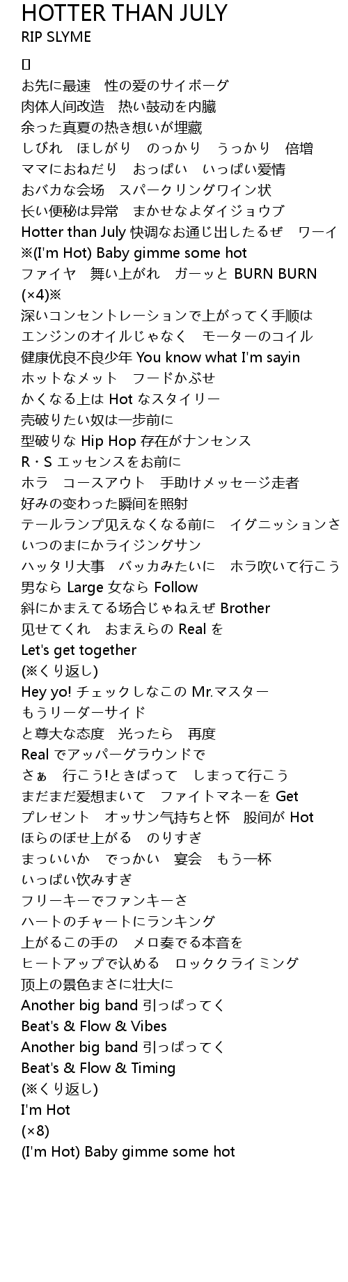 | Hotter than July 快调なお通じ出したるぜ ワーイ | |