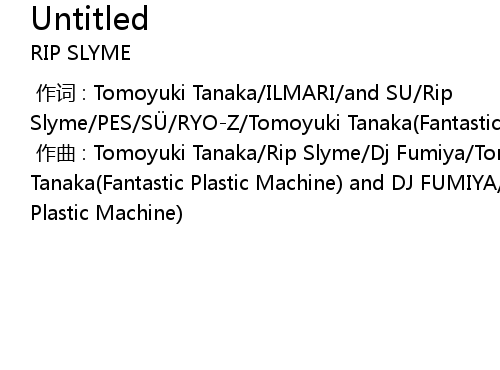 | [00:00.000] | 作词 : Tomoyuki Tanaka/ILMARI/and SU/Rip Slyme/PES/SÜ/RYO-Z/Tomoyuki Tanaka(Fantastic Plastic Machine) and DJ FUMIYA |