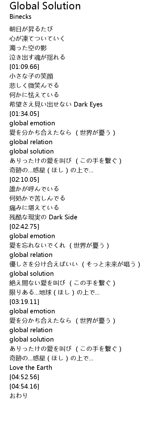 | [04:08.72] | 愛を分かち合えたなら (世界が憂う) |