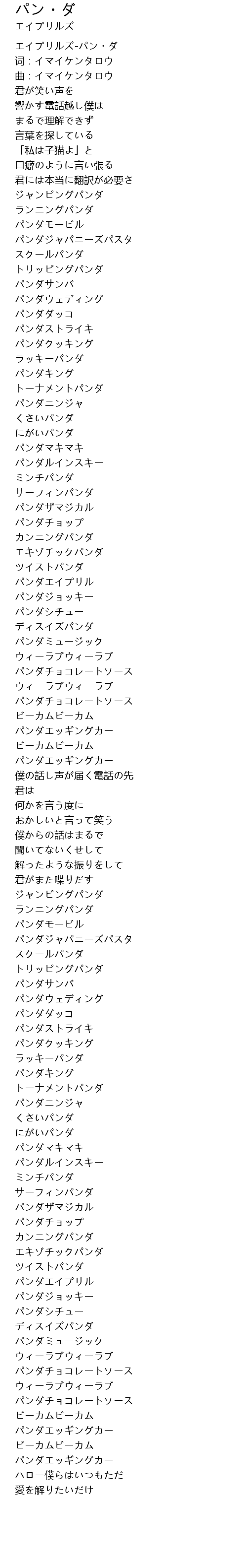 | [00:00.395] | エイプリルズ-パン・ダ |