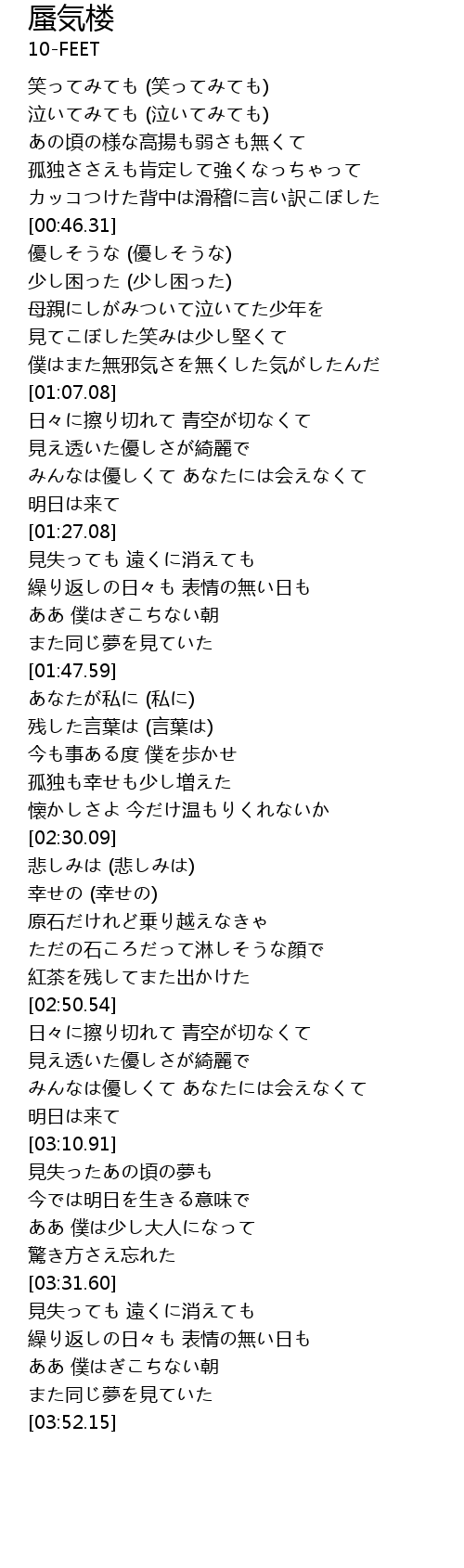 | [00:31.12] | あの頃の様な高揚も弱さも無くて |