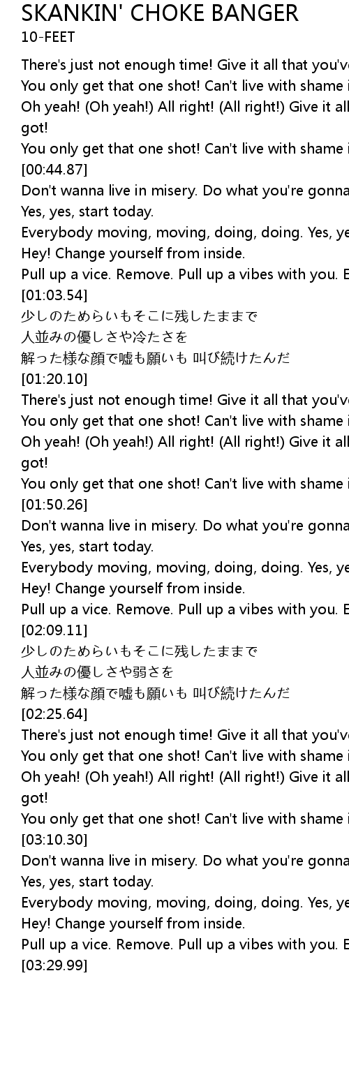 | [03:04.97] | You only get that one shot! Can' t live with shame in your life! |