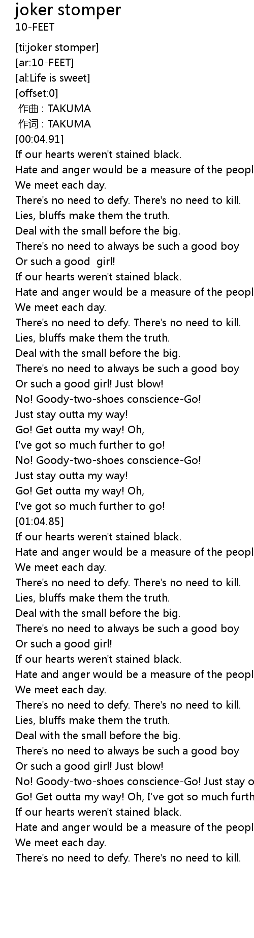 | [01:18.05] | There's no need to defy. There's no need to kill. |
