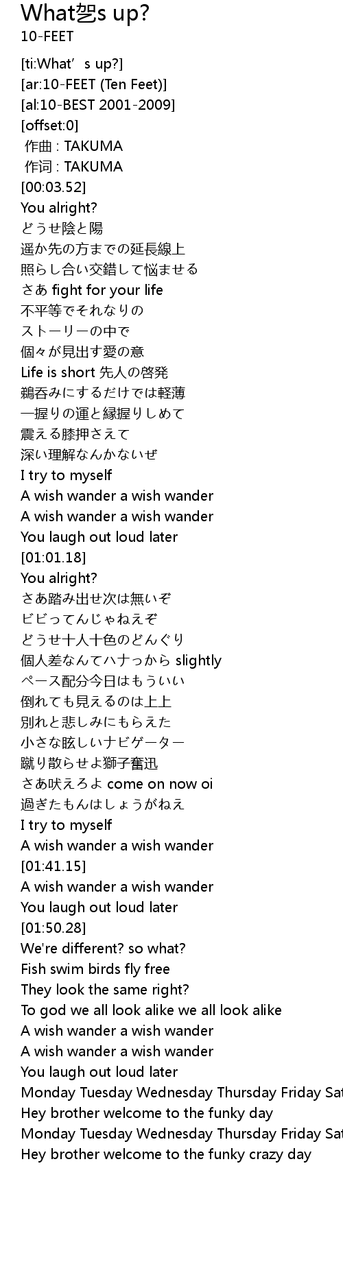 | [02:51.88] | Monday Tuesday Wednesday Thursday Friday Saturday night |