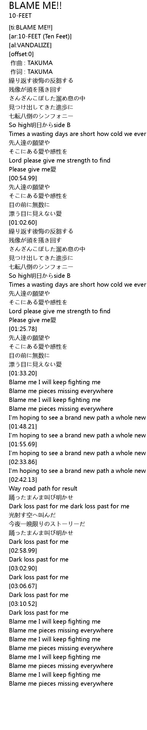 | [00:00.00] | zuò qǔ : TAKUMA |