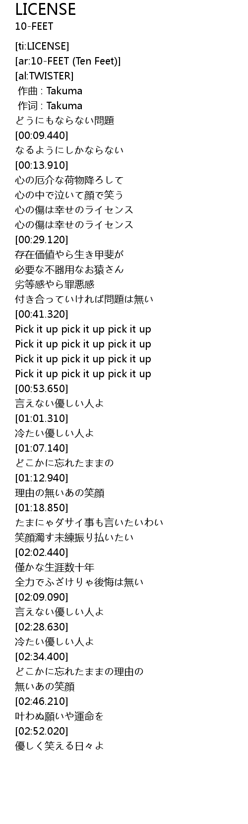 | [00:23.470] | 心の傷は幸せのライセンス |