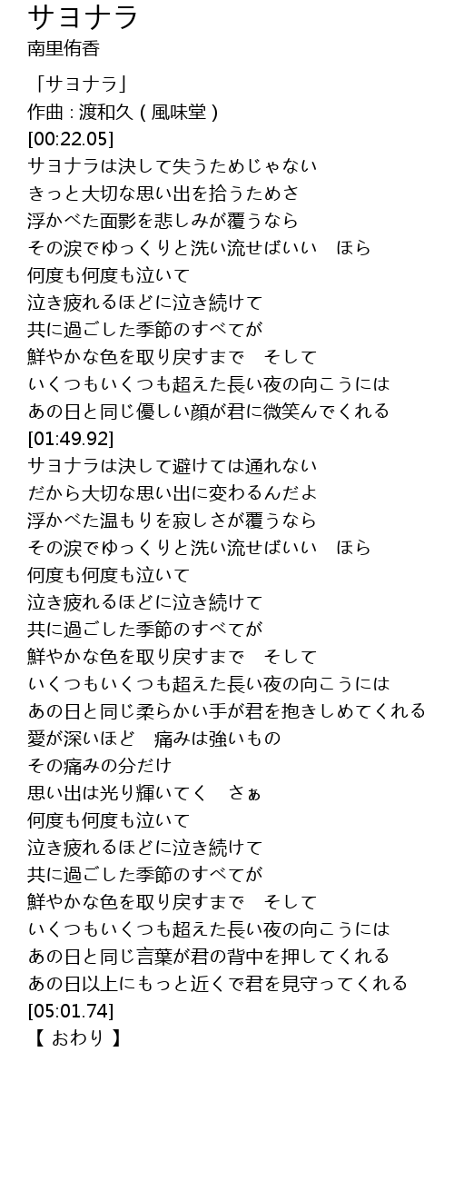 | [02:11.98] | サヨナラは決して避けては通れない |