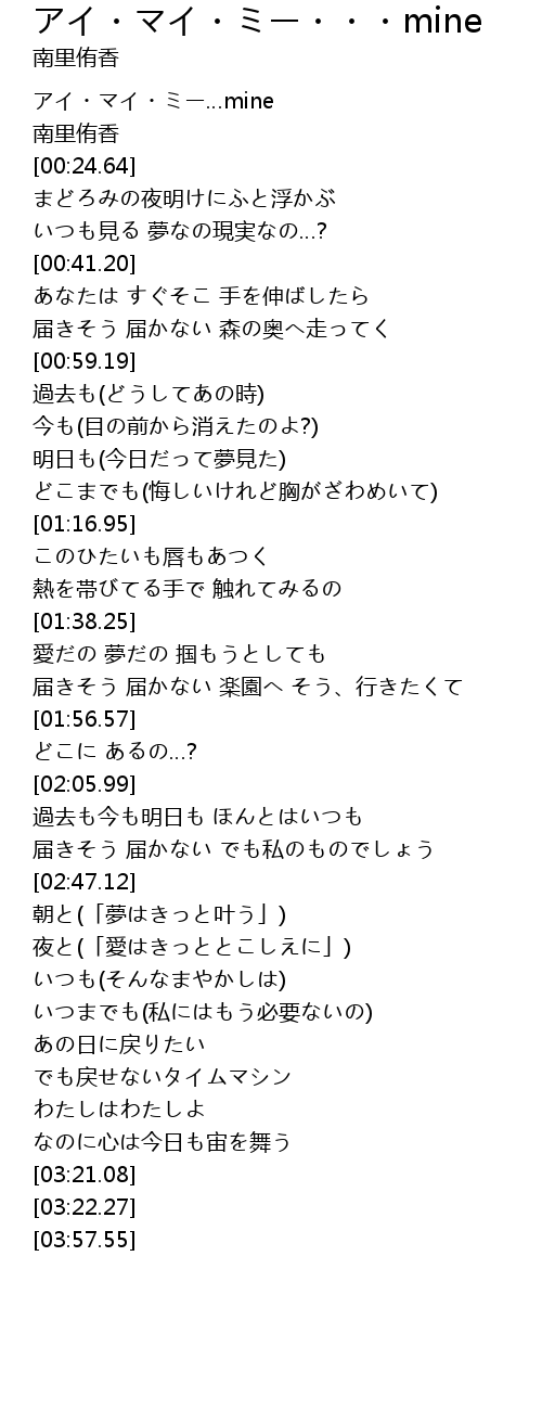 アイ・マイ・ミー・・・mine mine Lyrics