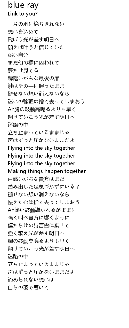 | [02:38.263] | 翔けていこう光が差す明日へ |