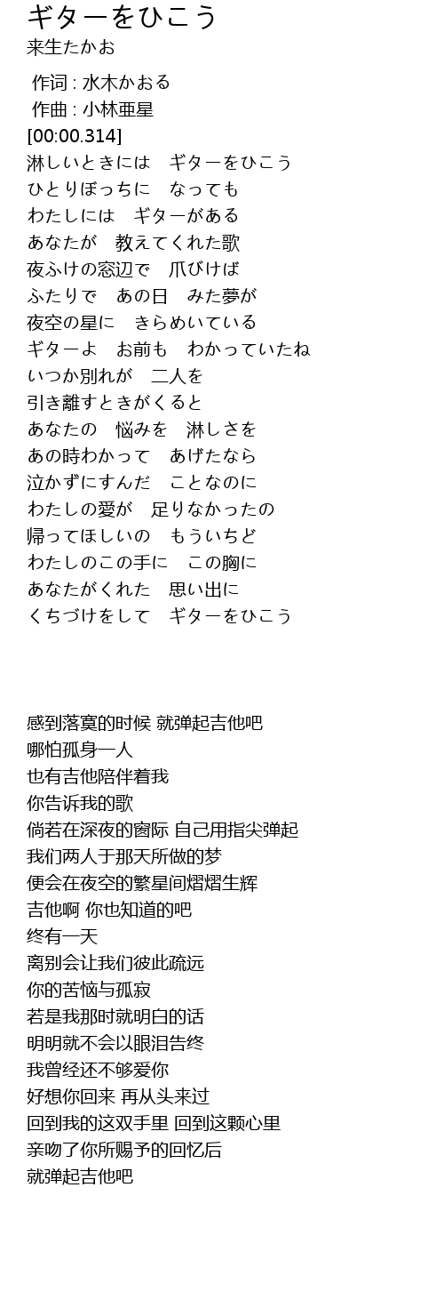 | [00:00.614] | 淋しいときには ギターをひこう |