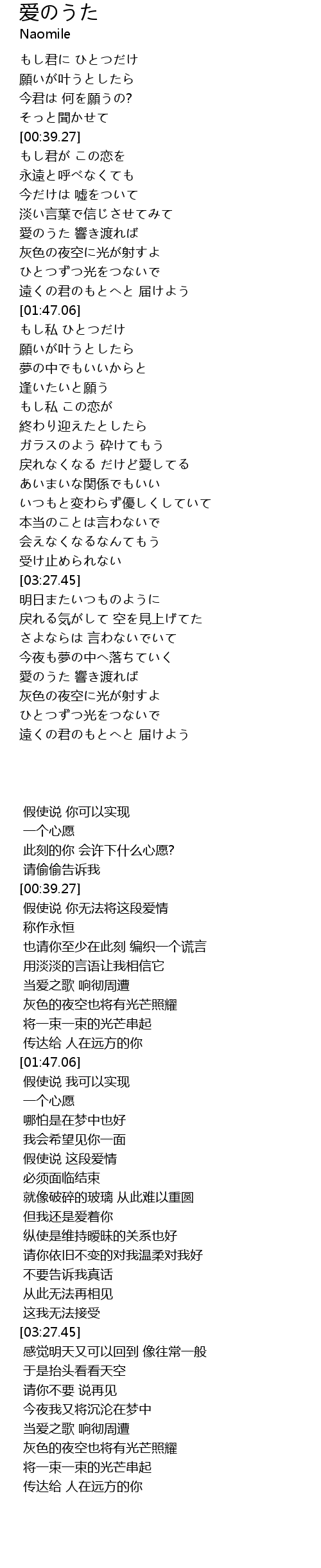 | Song | 爱のうた |