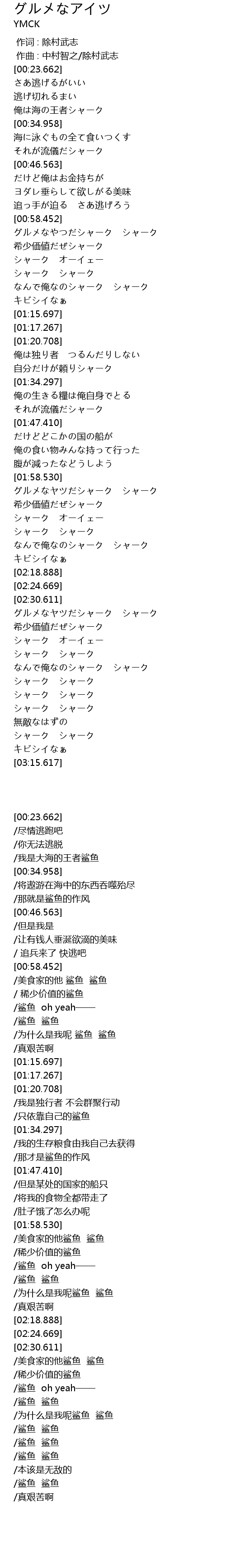 | [02:47.557] | グルメなヤツだシャーク シャーク |