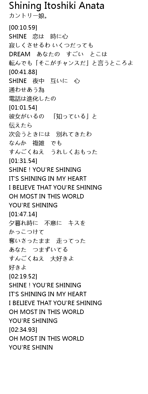 | [02:38.42] | YOU'RE SHININ |