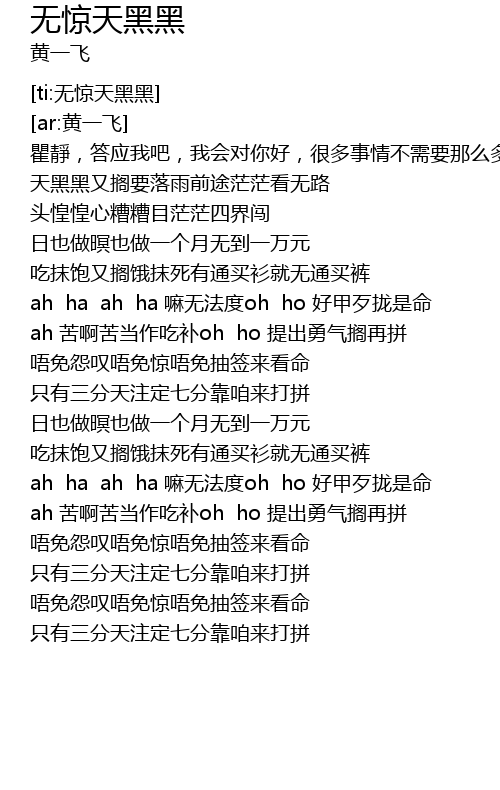 | [03:19.914] | 唔免怨叹唔免惊唔免抽签来看命 |