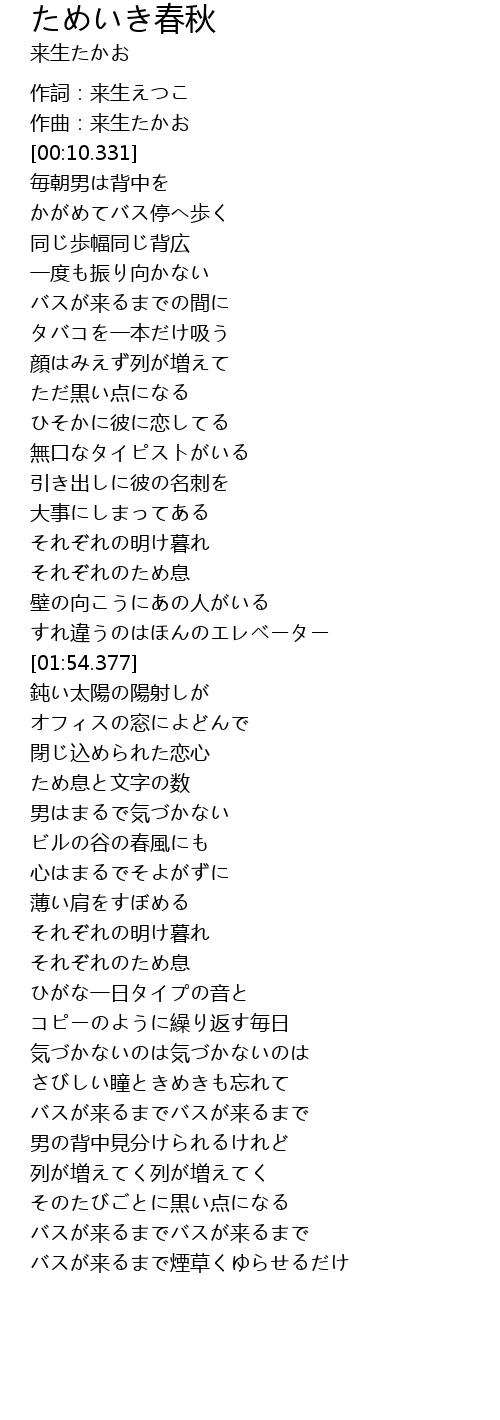 | [00:08.424] | 作曲:来生たかお |