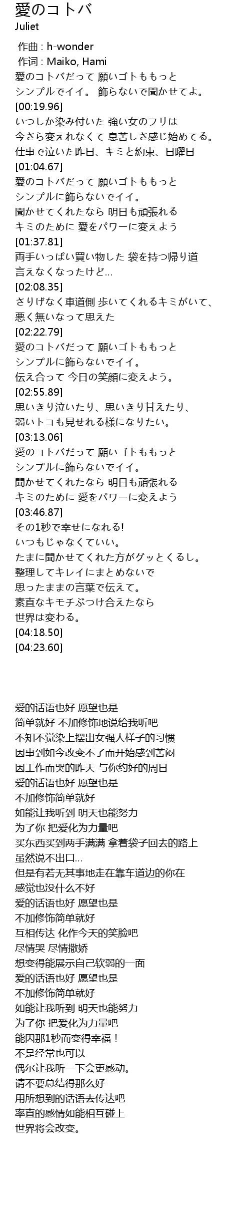 | [00:03.79] | 愛のコトバだって 願いゴトももっと |