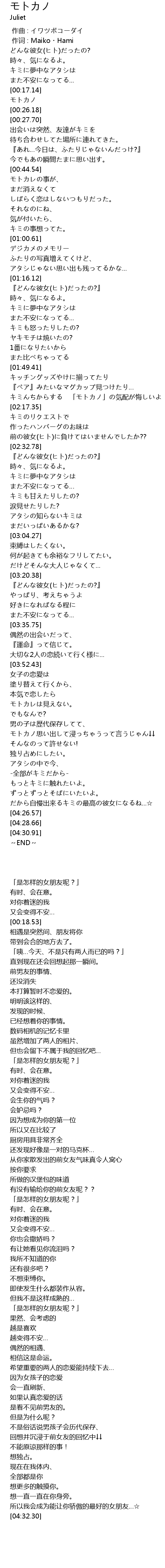 | [00:18.53] | モトカノ |