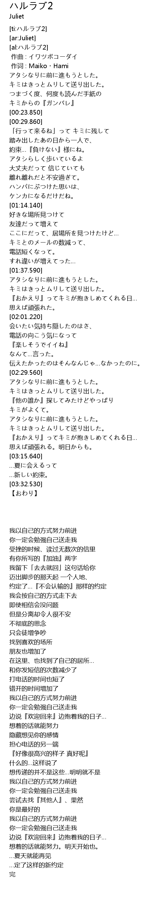 | [ti:ハルラブ2] | |