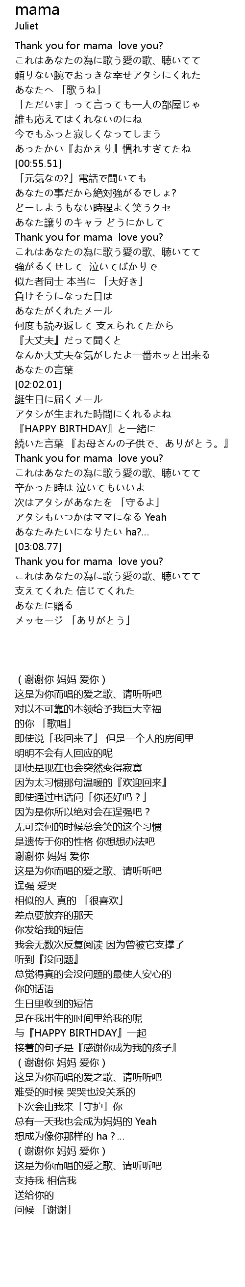 | [02:16.65] | 続いた言葉 『お母さんの子供で、ありがとう。』 |