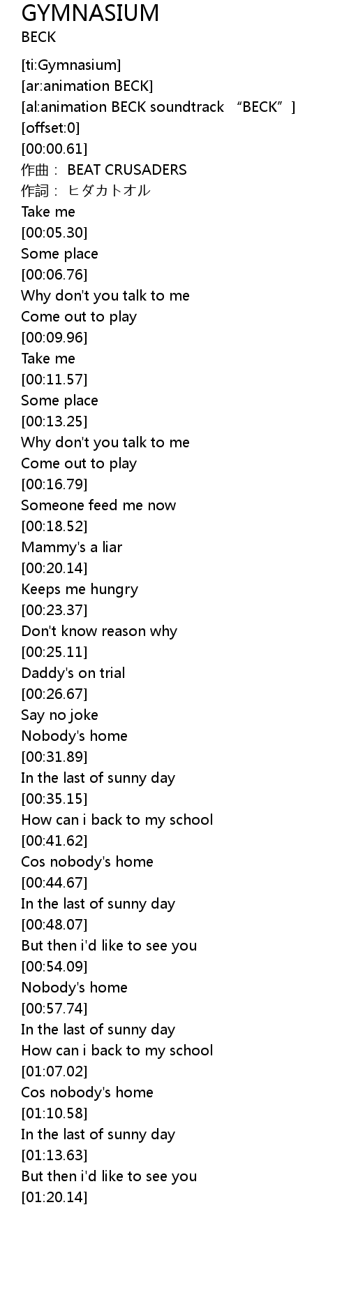 | [00:02.61] | zuo qu: BEAT CRUSADERS |