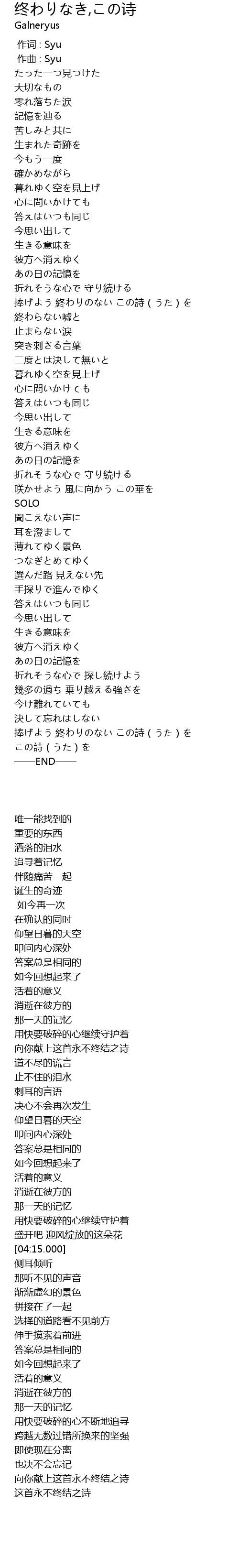 | [02:52.490] | 捧げよう 終わりのない この詩(うた)を |