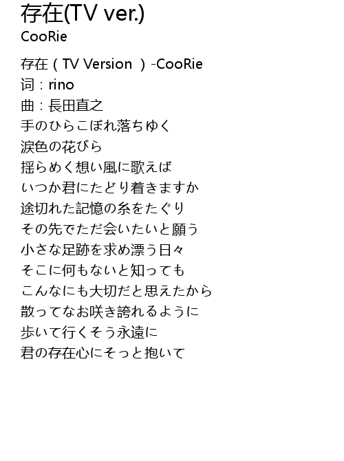 | [00:00.00] | 存在(TV Version )-CooRie |
