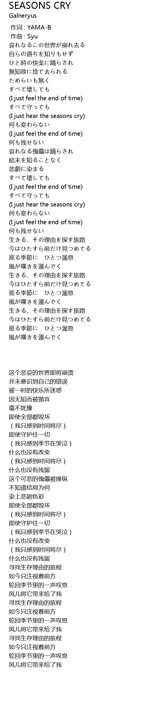| Song | SEASONS CRY |