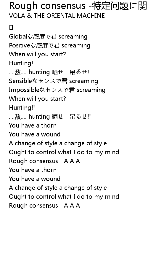 | Song | Rough consensus -特定问题に関する“集団の感覚” |