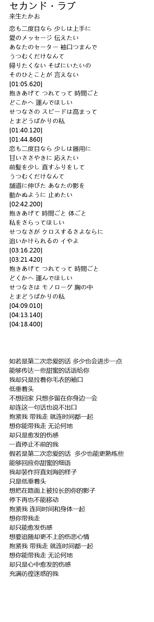 | [00:48.840] | 帰りたくない そばにいたいの |