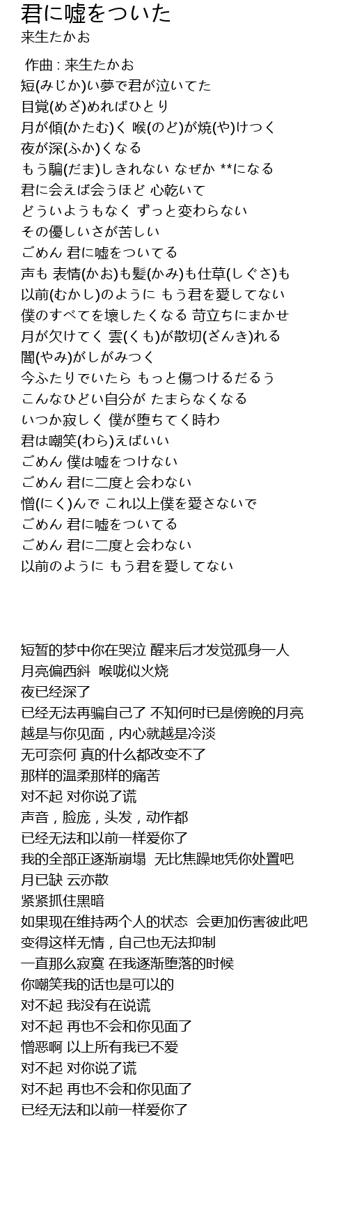 | Song | 君に嘘をついた |