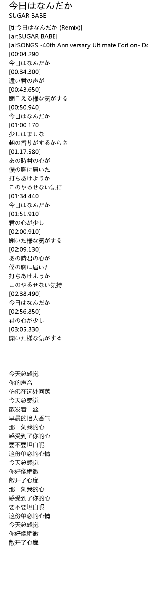 | [ti:今日はなんだか (Remix)] | |