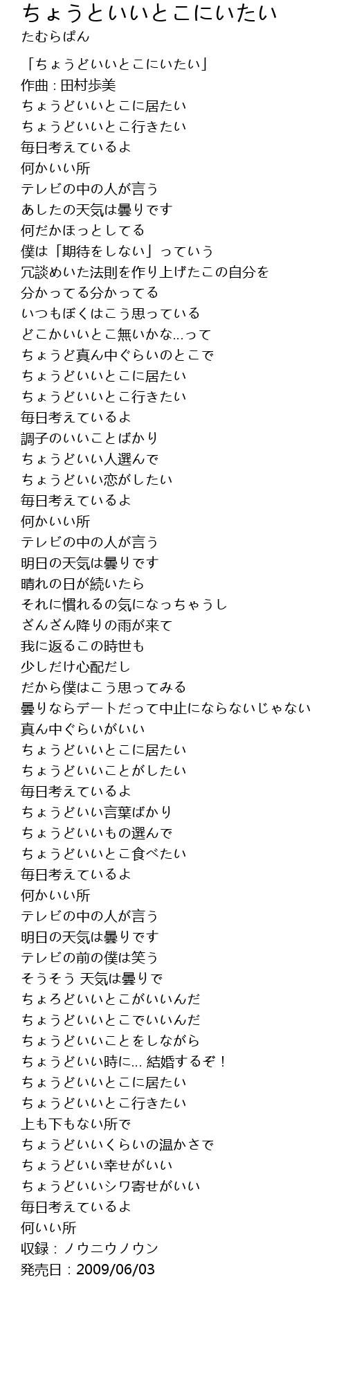 | ちょうどいいとこに居たい | |