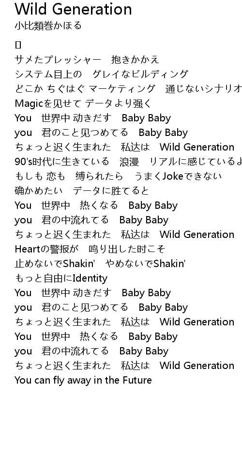 | ちょっと迟く生まれた 私达は Wild Generation | |