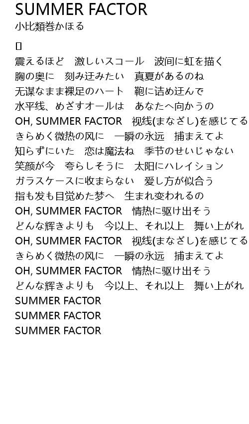 | Song | SUMMER FACTOR |