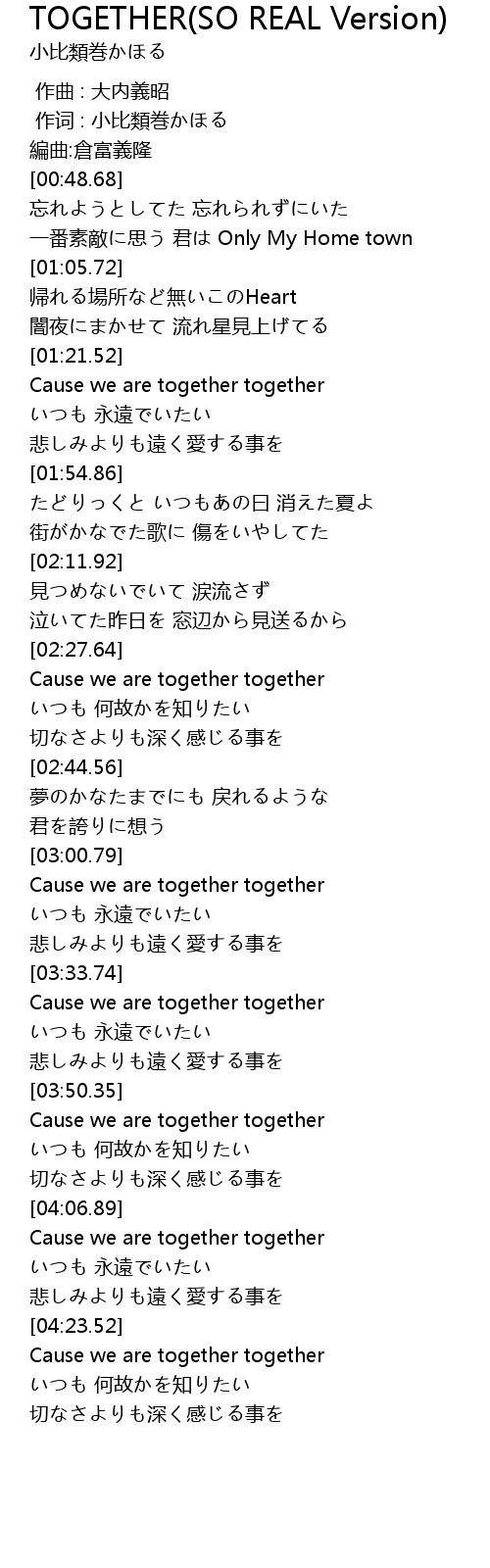 | [04:23.78] | Cause we are together together |