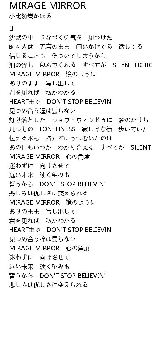 | 泪の译も 包んでくれる すべてが SILENT FICTION | |