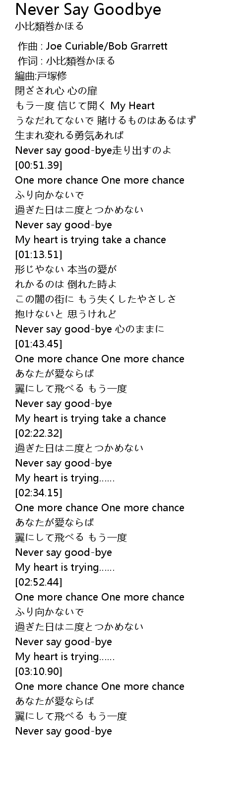 | [03:22.91] | Never say good-bye |
