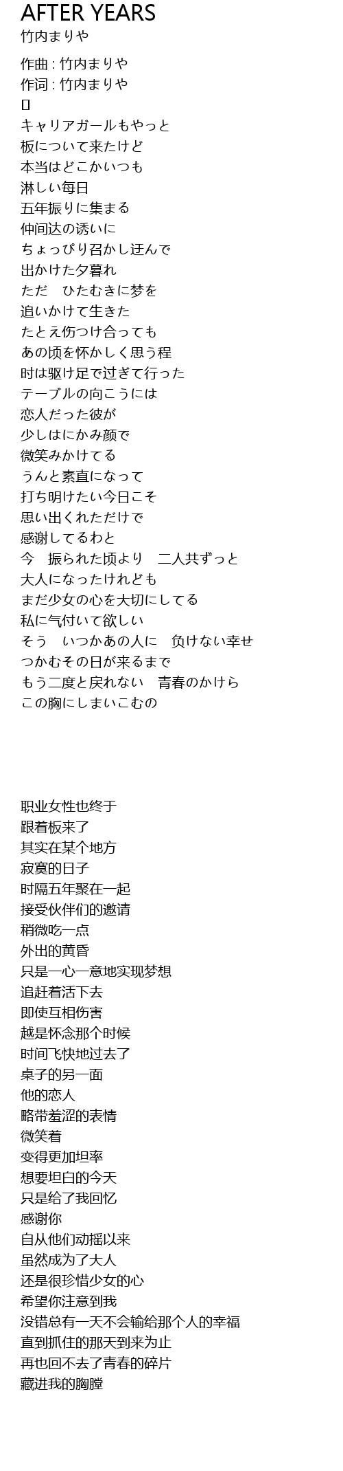 | Song | AFTER YEARS |