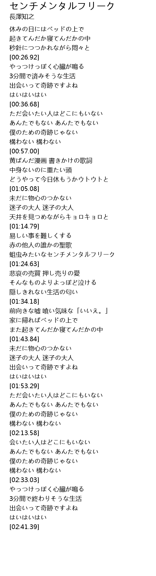 | [02:33.55] | やっつけっぽく心臓が鳴る |