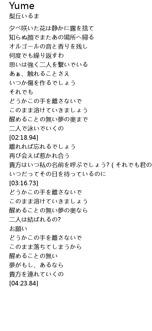 | [04:12.54] | 夢がもし、あるなら |