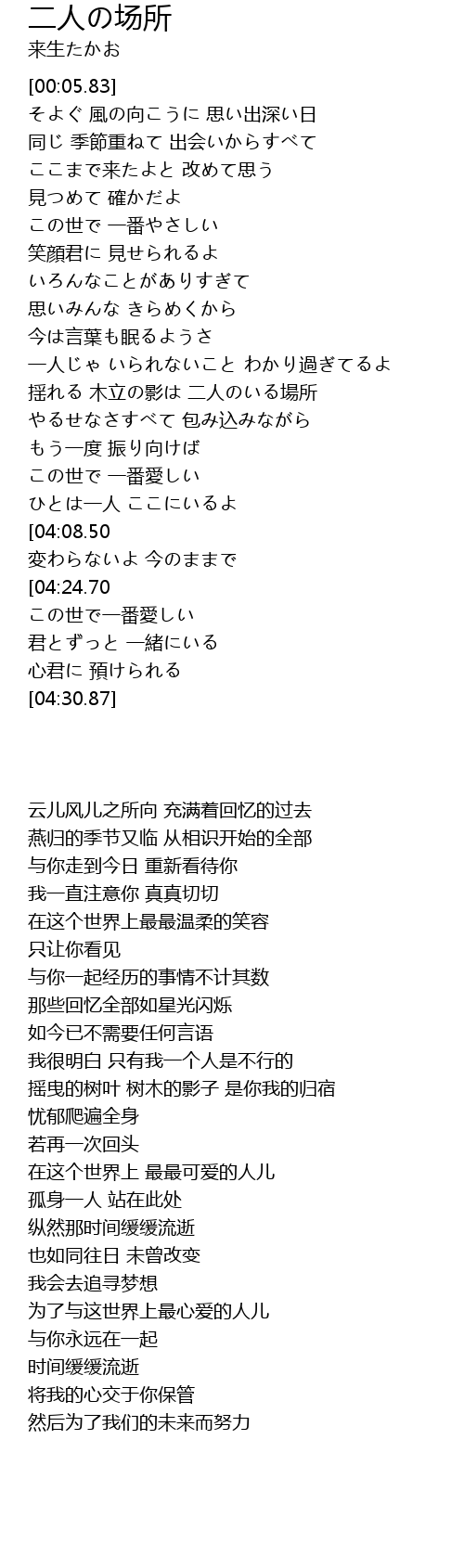 | [02:18.90] | 揺れる 木立の影は 二人のいる場所 |