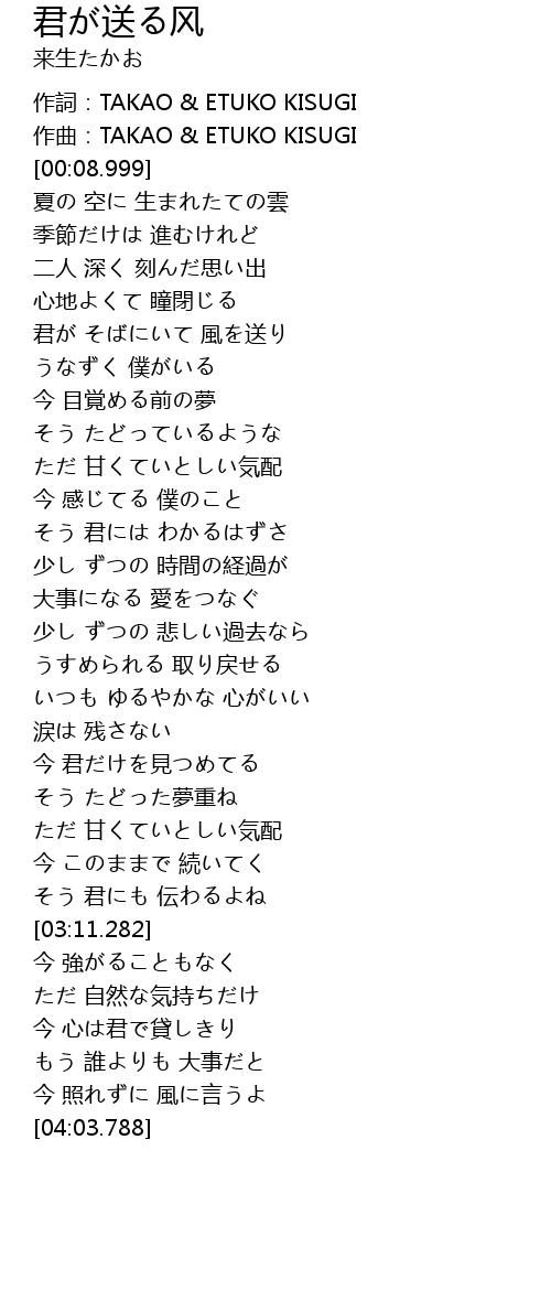 | [03:59.112] | 今 照れずに 風に言うよ |